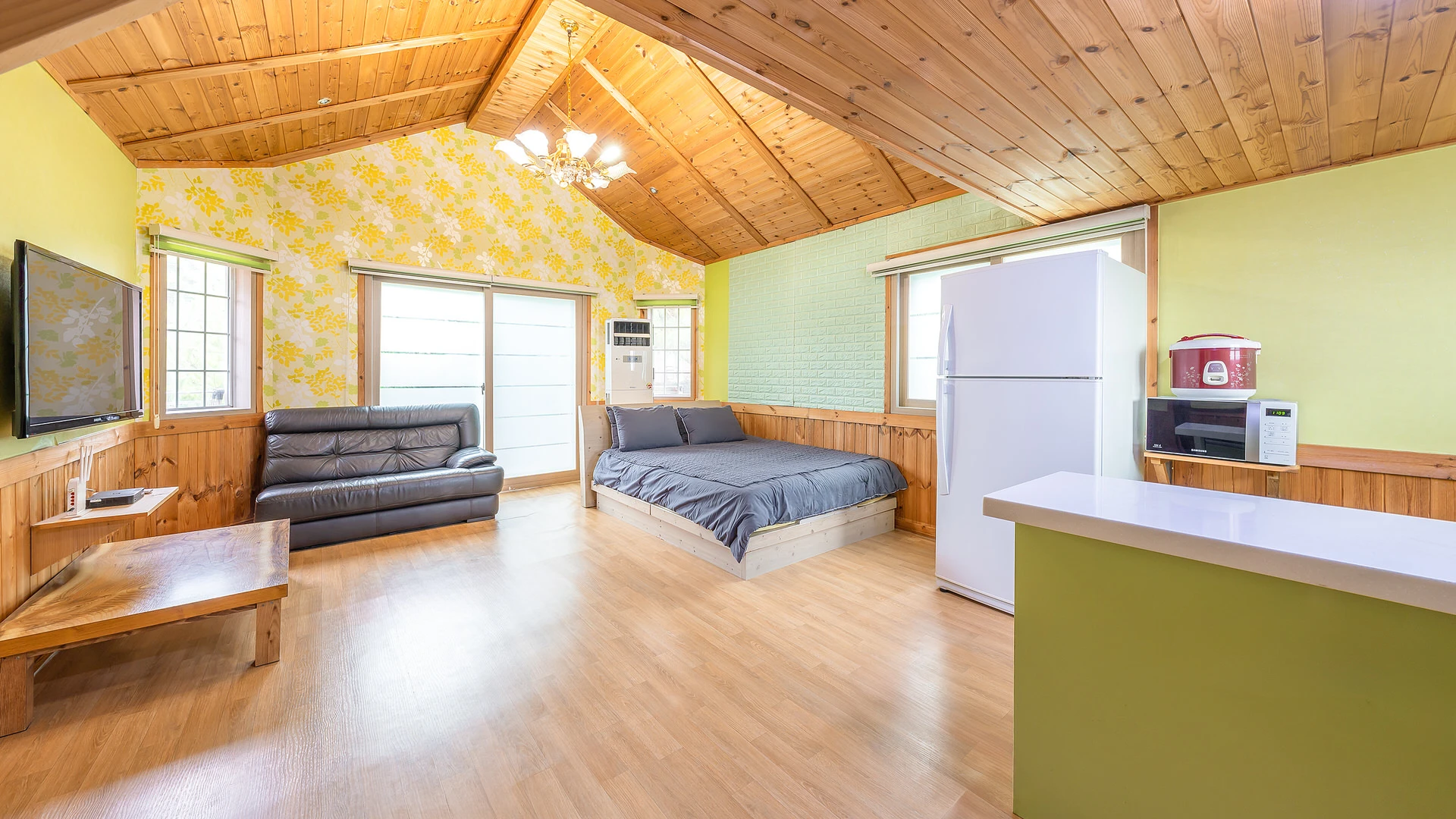 - 집기품목 : 취사시설/도구, 샴푸, 바디워시, 드라이기, 타월, 전자레인지, 전기밥솥, 테라스, 커피포트, TV, 냉장고, VOD, 욕실용품